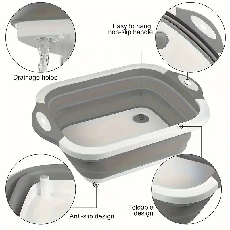Transform your kitchen workflow with this innovative multifunctional cutting board featuring a clever collapsible design.
